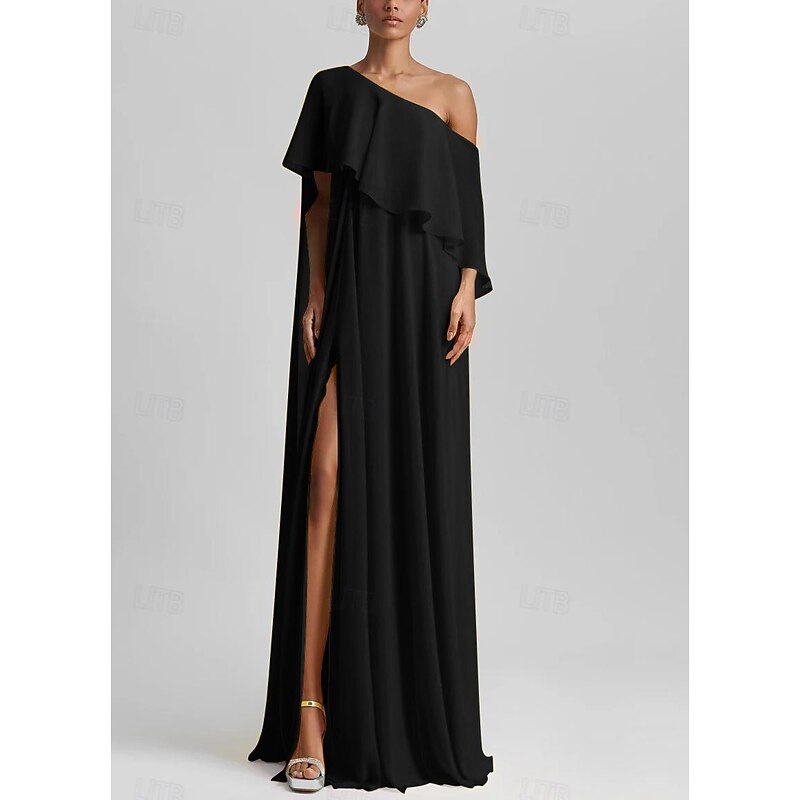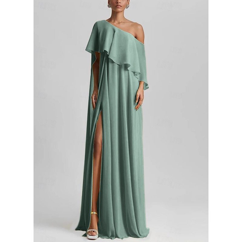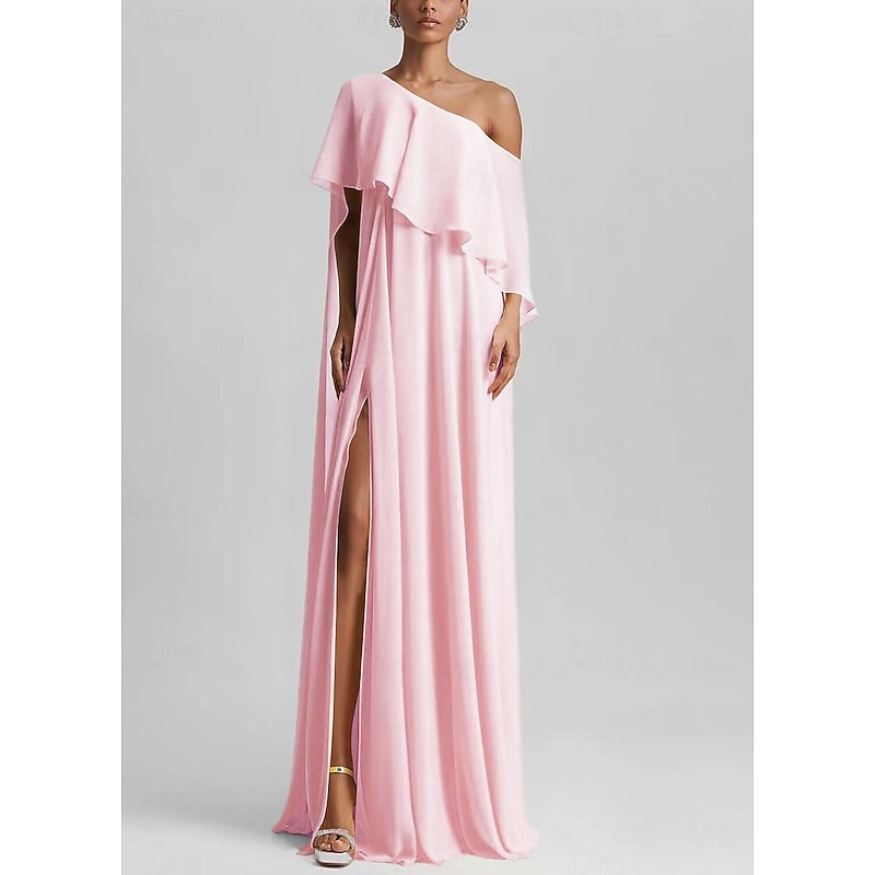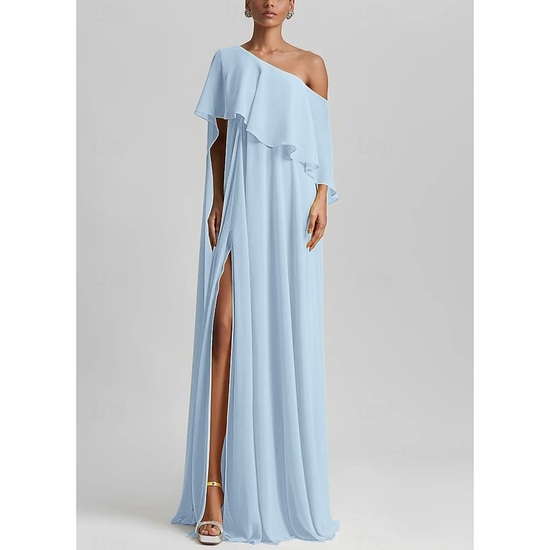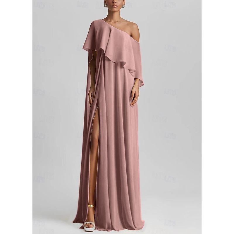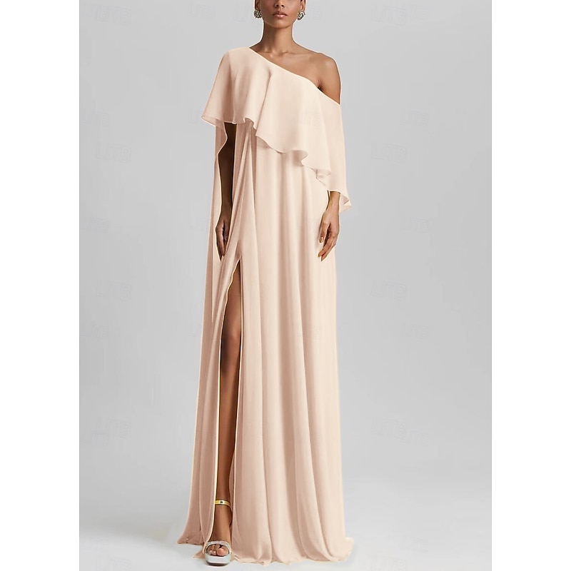 This A-Line Evening Gown Elegant Dress Beach Wedding Formal Wedding Guest Floor Length Sleeveless One Shoulder Stretch Chiffon with Ruffles Slit combines elegant design with practical functionality. Every detail has been carefully considered to ensure you get the premier possible experience. The supreme construction means this product will serve you well for years to come.