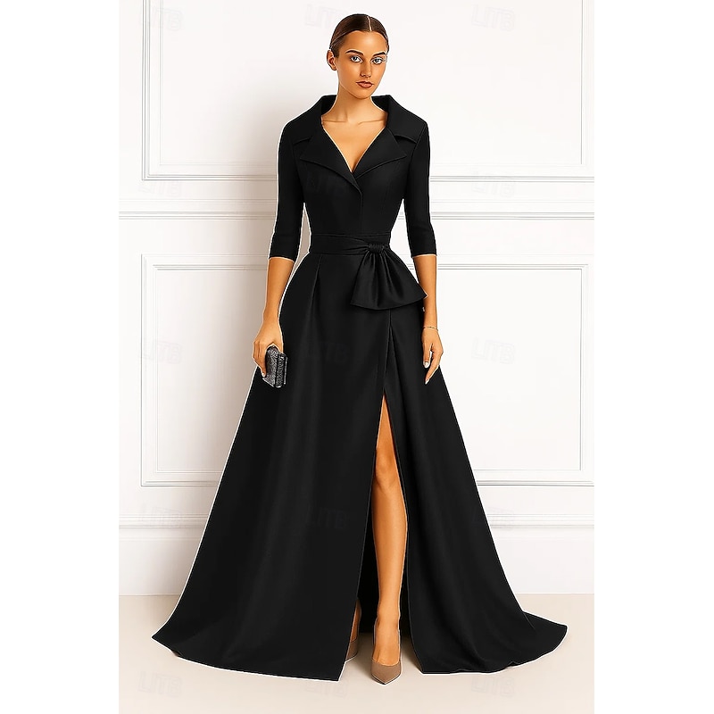 This A-Line Portrait Collar Evening Gown Elegant Dress Formal Wedding Sweep / Brush Train 3/4 Length Sleeve V Neck Stretch Satin with Bow and Slit 2025 combines elegant design with practical functionality. Every detail has been carefully considered to ensure you get the ultimate possible experience. The supreme construction means this product will serve you well for years to come.
