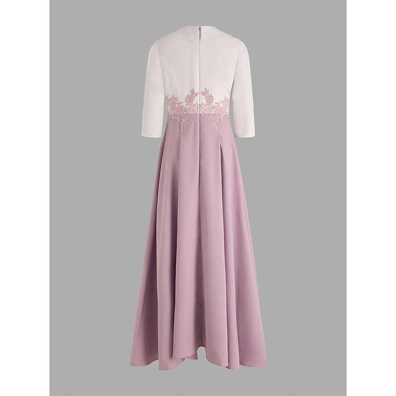 More information about Jumpsuit Mother of the Bride Formal Wedding Guest Elegant Party V Neck Ankle Length Crepe Lace 3/4 Length Sleeve with Appliques Color Block