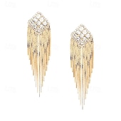 More information about Women's Stud Earrings Tassel Fringe Precious Fashion Personalized Imitation Diamond Earrings Jewelry Gold For Wedding Party Prom Festival 1 Pair