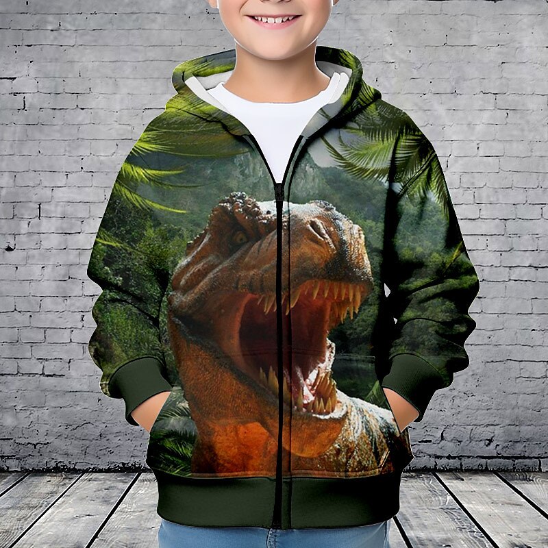 Why Choose Boys 3D Dinosaur Hoodie Coat Outerwear Long Sleeve 3D Print Fall Winter Fashion Streetwear Cool Polyester Kids 3-12 Years Outdoor Casual Daily Regular Fit?