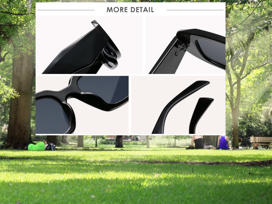 Origin: ImportedWhat’s Included: You’ll receive 5 fashionable pairs of small rectangular sunglasses in versatile colors—Black/Grey, White/Grey, Leopard/Tea, Tea/Tea, and Champagne/Tea—perfect for mixing and matching with any outfit.Perfect for Outdoor Activities: Ideal for parties, hiking, fishing, driving, shopping, traveling, and more. Whether you're exploring or relaxing, these sunglasses offer both style and functionality.Trendy & Comfortable Design: Lightweight & Durable: Made with high-quality PC frames and scratch-resistant AC lenses for long-lasting wear. One-Size-Fits-Most: The small rectangular frame suits most face shapes comfortably. Skin-Friendly & Secure Fit: Soft nose pads reduce pressure, while flexible temple arms ensure a snug fit. Crystal-Clear Vision: Anti-glare lenses enhance clarity, reduce eye strain, and maintain true color perception.Dimensions (Approx.): Frame Width: 143mm Lens Width: 66mm | Lens Height: 54mm Nose Bridge: 21mm | Temple Length: 139mm (Note: Slight variations of 1-3mm may occur due to manual measurement.)100% UV Protection: Blocks 100% of UVA/UVB rays, shielding your eyes from harmful sunlight while providing superior optical clarity.Easy to Clean & Maintain: The smooth lens surface resists fingerprints and dust, making upkeep effortless. Perfect for everyday use. premium materials and excellent craftsmanship ensure long-lasting durability.