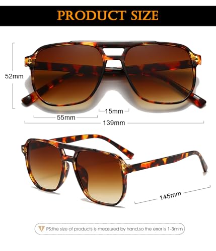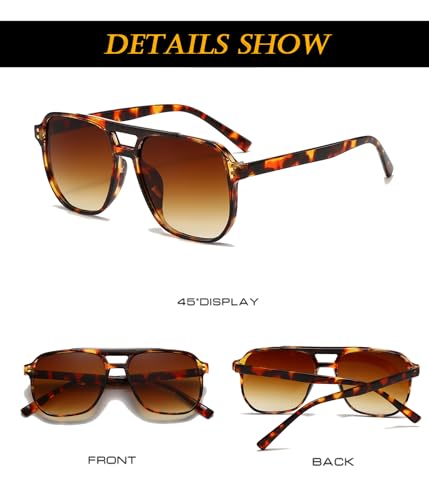 Origin: ImportedRETRO AVIATOR SUNGLASSES: These retro oversized aviator sunglasses, paired with a timeless double bridge square frame and embedded with metal rivets, add a touch of detail to the sunglasses.premium MATERIALS: The square aviator sunglasses are made of high-quality plastic frames and resin lens material, durable lightweight materials and reinforced metal hinges. It is smooth,comfortable and durable.Suitable for both men and women, unisex retro sun shades.UV400 PROTECTION LENS: The lenses of this trendy square aviator sunglasses can block 100% UVA and UVB rays, help restore true color, protect your eyes and pamper yourself with a more accurate visual experience!SUITABLE FOR ANY OCCASION: Wherever you go, at the mall, car, run or by the pool, these edgy sunglasses will blend your look together and make you think, Wow!RELIABLE SERVICE: In case any accident of the shipping or unexpected damage happened to these fashion retro sunglasses. Please contact us without hesitation, we will reply within 24 hours to solve the problem until satisfaction. Perfect for everyday use. High quality materials and excellent craftsmanship ensure long-lasting durability.