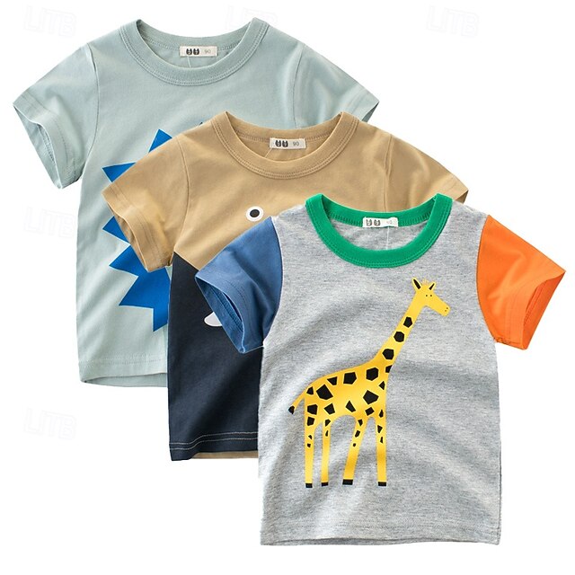 Why Choose Multi Packs 3pcs Boys Crew Neck Short Sleeves Gray+Yellow+Green T Shirt Tee Top Print Graphic Vacation Daily Wear 100% Cotton Spring & Summer?