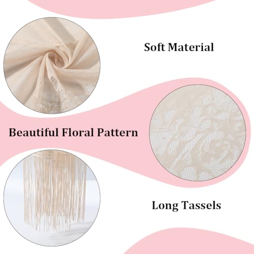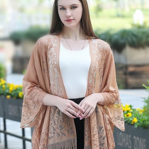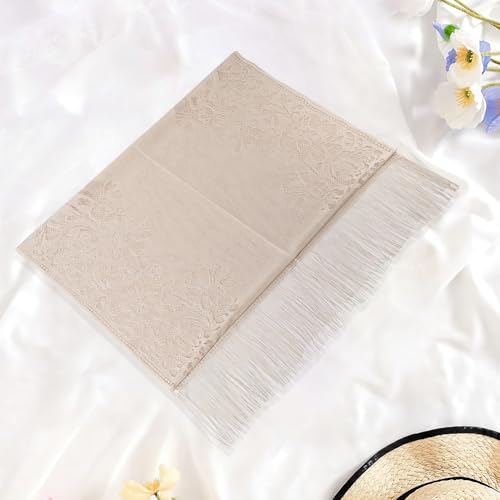 Pink Floral Lace Shawl Wrap Tassel Fringe Gauze Lace Shawls and Wraps Flower Pattern Hollow Solid Mesh silky Summer Scarf for Women Formal Wedding Party Bridal Evening Dresses Accessories