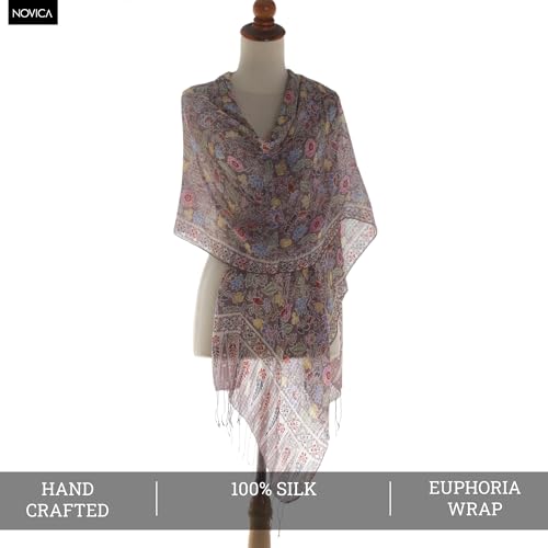 Why Choose NOVICA Artisan Handmade Silk Batik Shawl Floral Wrap Brown Multicolor Indonesia Accessories Patterned Cognac 'Euphoria'?