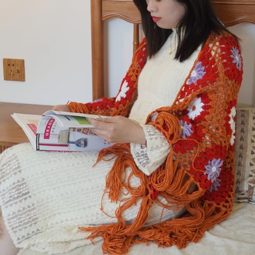 Why Choose Handmade Crochet Fringed Poncho Cape Tassels Shawls Wraps Granny Square Womens Coat Sweater 68x42in?
