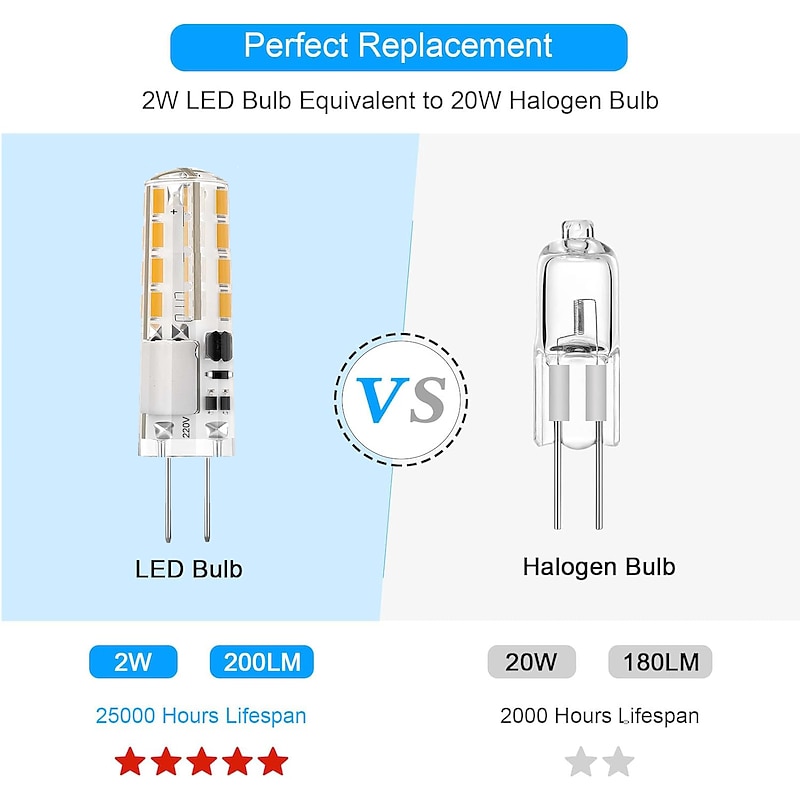 $18.49 - 10PCS G4 LED Bulb 2W 20W Halogen Bulb Replacement G4 Double Pin Base Bulb Non-Dimmable RGB Warm Light Neutral light White light for Landscape Under Cabinet/counter RV LightingAC220V AC110V 2025. Shop for cheap LED Bi-pin Lights online? Buy at lightinthebox.com on sale today!