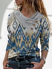 This Women's T shirt Long Sleeve Geometric Abstract Vintage sophisticated Basic Long Sleeve Pile Neck V Neck Regular Tops Daily Weekend Buttons Print White Gray Spring Fall Winter Prefall combines elegant design with practical functionality. Every detail has been carefully considered to ensure you get the best possible experience. The first-class construction means this product will serve you well for years to come.