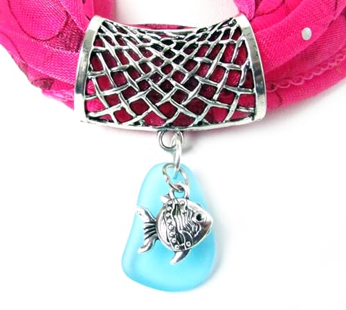 Why Choose Sea Glass and Fish Charm Scarf Ring, Scarf Pendant, Scarf Slide, Scarf Jewelry, Accessories for Scarves?