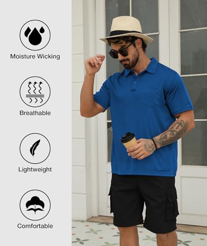 Fabric type: 95% Polyester, 5% SpandexCare instructions: Machine WashOrigin: ImportedClosure type: ButtonHIGH QUALITY FABRIC: This men's work polo shirt is made of 95% polyester and 5% spandex. The fabric is soft, lightweight and breathable, keep you comfortable all dayUNIQUE DESIGN: This men’s tactical polo shirt is designed with 3 buttons and a classic style. The hook design under the placket can facilitate carrying sunglasses, pens, etc. Left chest pocket that can store keys, headphones, and other small items. The split hem adds a sense of fashion and shows youthful vitalityOCCASIONS: Mens pocket polo shirt is suitable for various occasions such as business, company, work, tennis, golf, soccer, tactical training, vacation travel, daily casual, fitnes, jogging, holiday, walking, festival, football sports or four seasons all day wear2025 NEW UPGRADE: The men polo has new upgrade of fabrics, size and styles. The fabric is more comfortable and the pocket is more durable. The perfect gift for your boyfriend, son, husband and yourselfTIPS: This men short sleeve polo shirt anti-pilling, anti-fading, support machine washing. Please choose the size refer to our SIZE CHART Perfect for everyday use. superior materials and excellent craftsmanship ensure long-lasting durability.