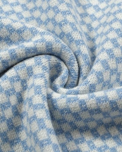 OXKNIT Men's Zipper Retro Polo Shirt Textured Casual Knit Short Sleeve Blue Polo T Shirt