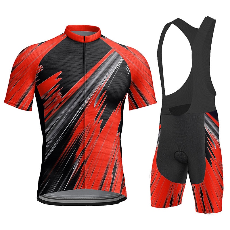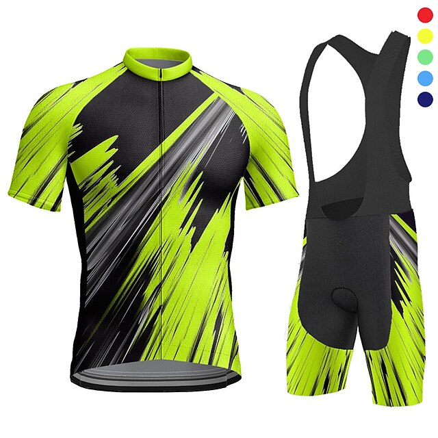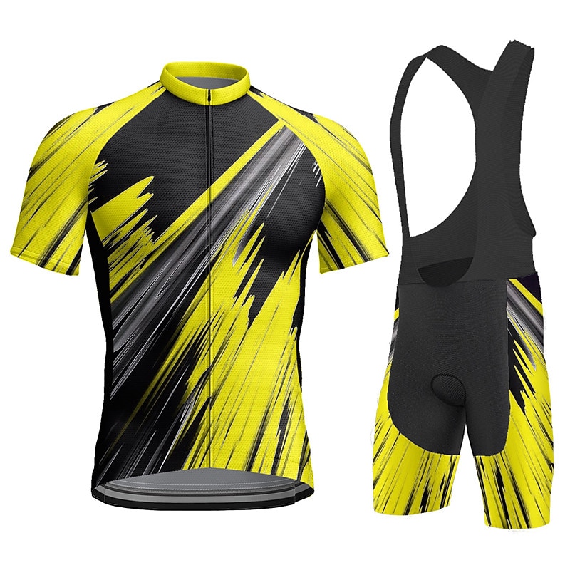 Why Choose Men's Cycling Jersey with Bib Shorts Short Sleeve Mountain Bike MTB Road Bike Cycling Yellow Red Blue Geometic Bike Clothing Suit 3D Pad Breathable hasty Dry Back Pocket Polyester Spandex Sports?