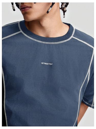 - Feature: Letter print, Contrast Binding, Round Neck, Short Sleeve, T Shirt Tops for Men
