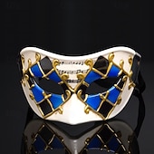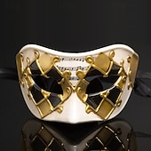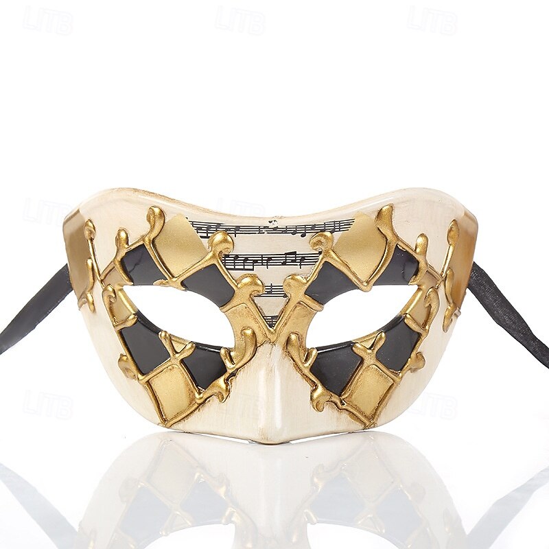 Highlights [Fabric] Crafted from lightweight, sturdy plastic, this Venetian mask ensures both durability and comfort for extended wear. The material choice allows for intricate detailing without compromising on ease of wear. [Fit] This half-face mask is designed for adults, specifically men, and features a snug fit that sits comfortably over the eyes, enhancing the wearer's mysterious presence. [Design Highlights] The mask stands out with its ornate geometric patterns in black and gold, paired with exclusive musical notes that add an artistic flair. The curved edges and decorative details reflect the classic elegance of Venetian design, while black satin ribbons offer easy adjustment for a secure fit. [Occasions] Ideal for masquerade balls, costume parties, theatrical performances, or any festive event like Halloween, Carnival, and Mardi Gras. The mask captures the essence of these celebrations, making it a perfect accessory to elevate your costume with drama and sophistication. [Size Range] Available in a one-size-fits-most design, it caters to a wide range of adult wearers, accommodating different fits while maintaining style and comfort. Perfect for everyday use. first-class materials and excellent craftsmanship ensure long-lasting durability.