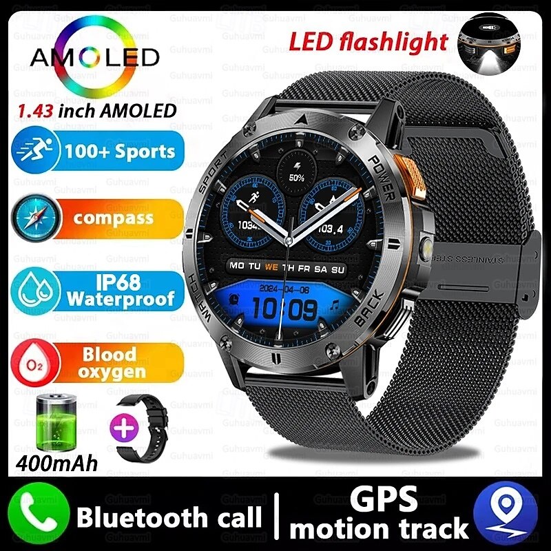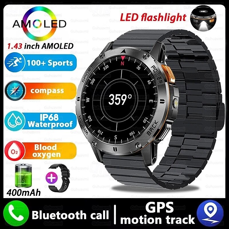 trending ! AK77 Smart Watch 1.43 inch Smartwatch Fitness Running Watch Bluetooth Pedometer Call Reminder Activity Tracker Compatible with Android iOS Men Long Standby Waterproof Media Control IP68 22mm Watch