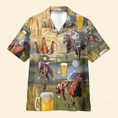 trending ! Kentucky Derby Men's Beer Horse Racing Shirt Cuban Collar Shirt Short Sleeve Vintage Retro Vacation Holiday Festival Summer Spring Camp Collar Shirt 3D Print Funny Kentucky Derby Shirts Yellow