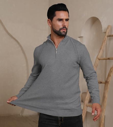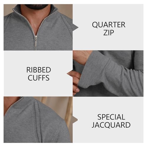 Mens Fashion Knit Pullover Sweater Quarter Zip Long Sleeve Mock Neck Ribbed Sweater