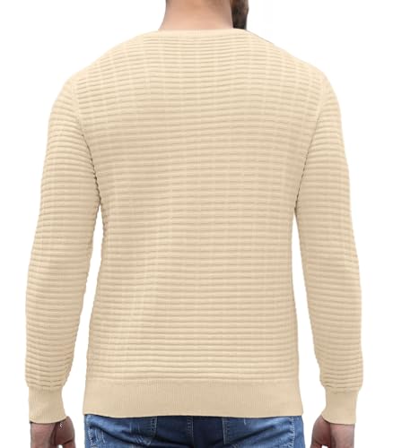 Askdeer Men's Crewneck Sweater Cable Knit Pullover Sweater Long Sleeve Knit Textured Sweater with Ribbing Edge