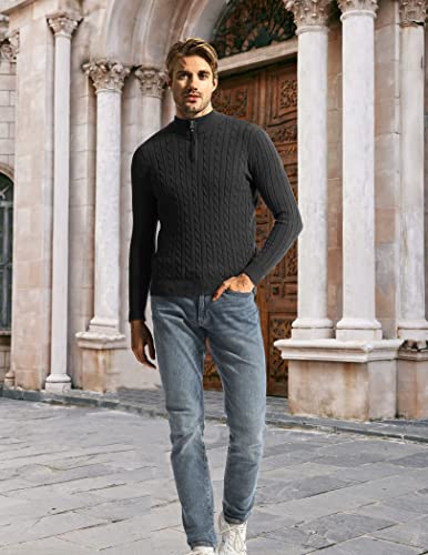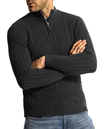 Surenow Men's Quarter-Zip Sweater Cable Knit Crew Neck Pullover Sweater Slim Fit supple Thicken Casual Polo Sweaters for Men