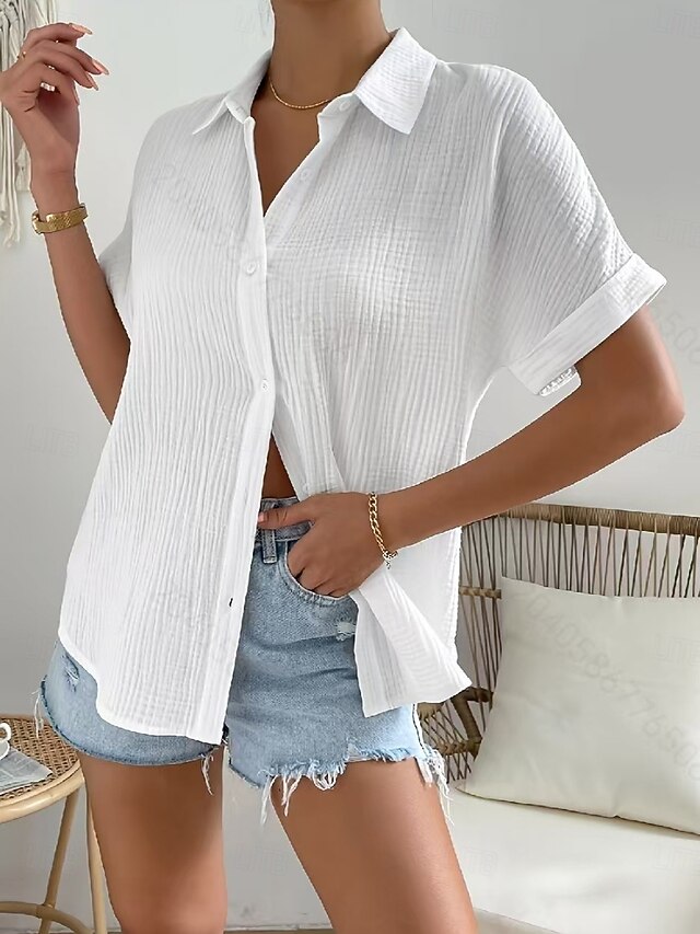 This Women's Cotton Linen Shirt Blouse Solid Color Elegant Casual Short Sleeve Shirt Collar Regular Tops Daily Holiday Buttons White Summer Spring combines elegant design with practical functionality. Every detail has been carefully considered to ensure you get the premier possible experience. The supreme construction means this product will serve you well for years to come.