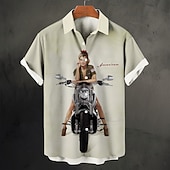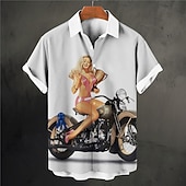 trending ! Men's Vintage Motorcycle Pin Up Girl Shirt Summer Hawaiian Shirt Aloha Shirt Short Sleeves Shirt Turndown Vintage Fashion Streetwear Outdoor Street Casual White Red Beige S M L
