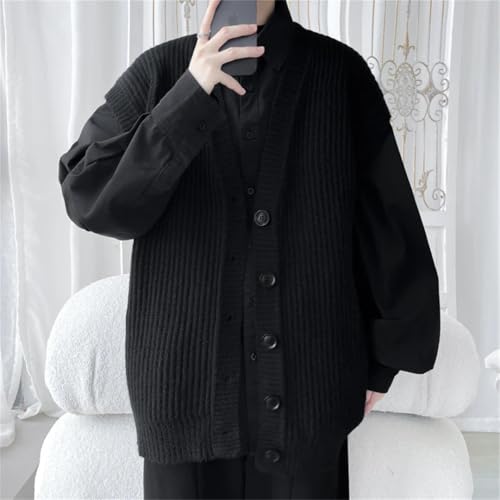 trending ! Men's Sweater Vest V-Neck Solid Color Sleeveless Knitted Button Cardigan Vest Casual Cable Knit Sweater