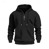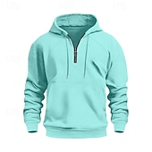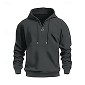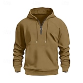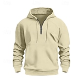 More information about Men's Hoodie Quarter Zip Hoodie Apricot Black Royal Blue Khaki Light Grey Hooded Plain Drawstring Pocket Quarter Zip Sports & Outdoor Daily Holiday Polyester Streetwear Basic Casual Spring Fall