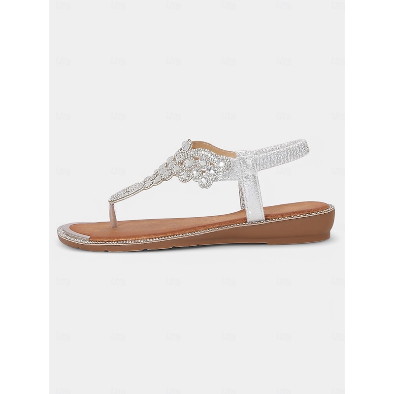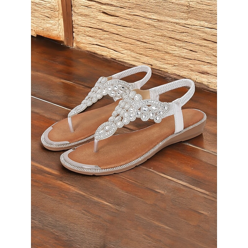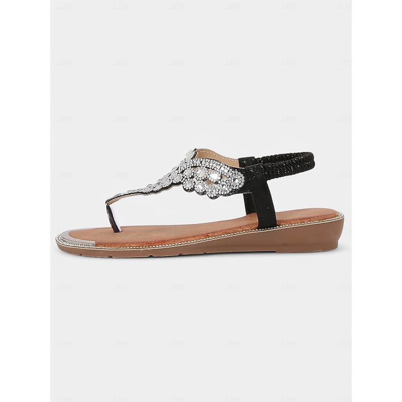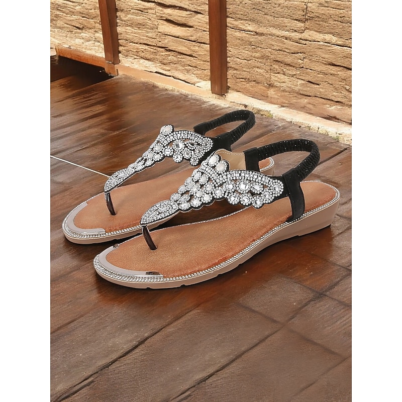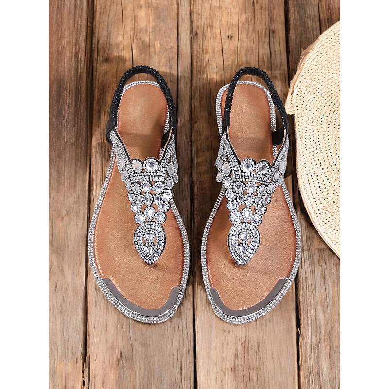 trending ! Women's Boho - Style Embellished Brown Sandals – Crystal - Adorned Flat Thong Footwear for Summer Festivals, Beach Trips and Casual Gatherings