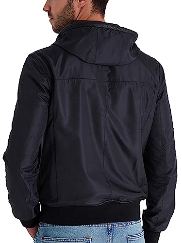 Men's Reversible Leather Bomber Jacket with Hood - Real Genuine Lambskin Leather Jacket for Men