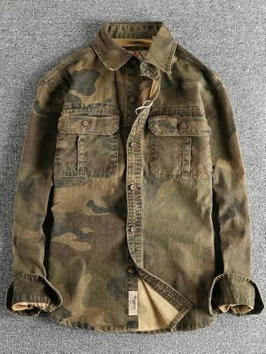 trending ! Autumn and Winter Retro Woven Camouflage Cargo Shirt Men's Cotton Washed Old Double Pockets Thin Jacket
