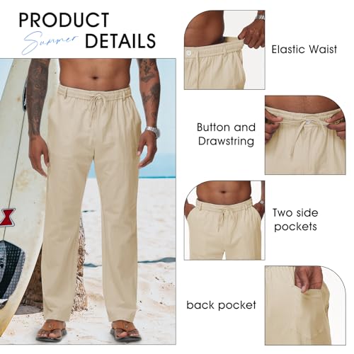 More information about Durio Mens Casual Linen Pants Elastic Waist Lightweight Linen Beach Pants Straight Leg Casual Pants Summer Beach Yoga