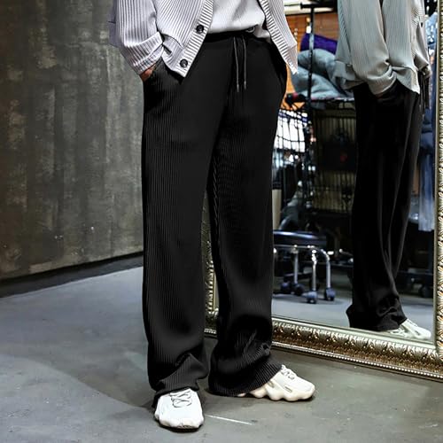Hawyet Casual Pants for Men Solid Color Straight Leg Sweatpants Drapey Striped Drawstring Elastic Waist Loose Fit Trousers