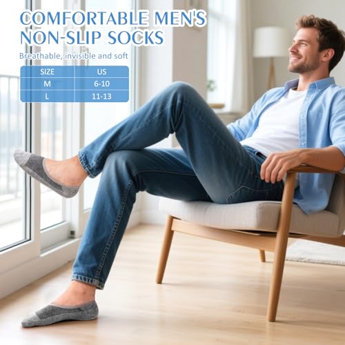Sunm Boutique Men's No Show Socks 3/6 Pairs Low Cut Invisible Cotton Socks for Loafer with Non Slip Grips Size 6-10/10-13