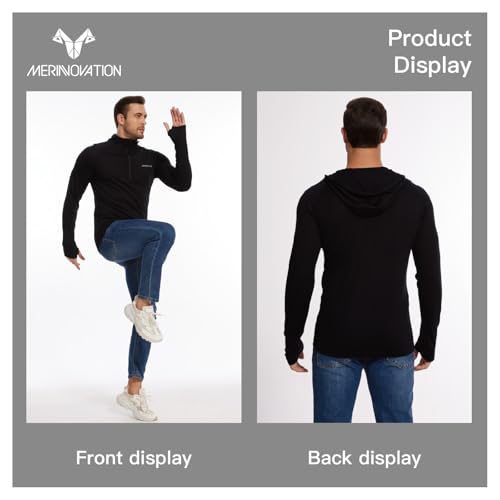 Merino Wool Hoodie Men Lightweight Merino Wool Base Layer Mens quarter zip hoodie sweatshirt
