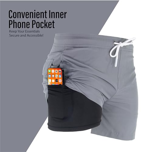 Men's Swim Trunks Swim Shorts rapid Dry 5 inch Inseam Beach Shorts with Compression Liner and Zipper Pocket