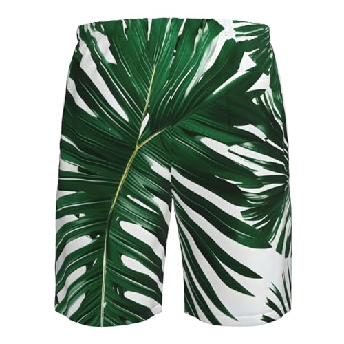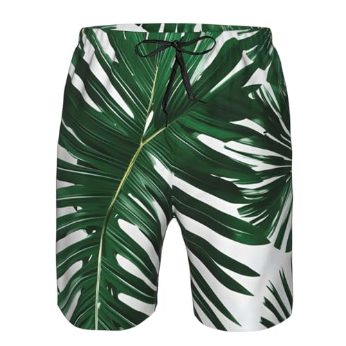 Men's Beach Shorts Swim TrunksFun Patterns Green Palm Leafs Print for Surfing Running Summer Vacation