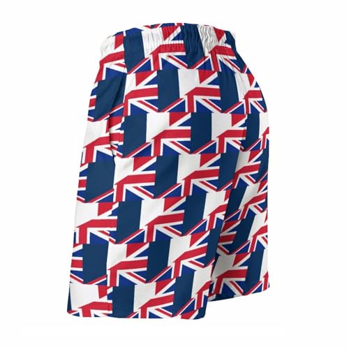 Flag of France and United Kingdom Mens Swim Trunks rapid Dry Beach Swimming Shorts with Mesh Lining and Pockets