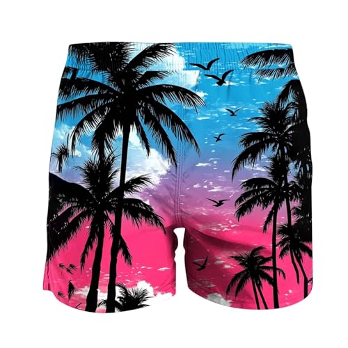 Men Floral Graphic Shorts Elastic Waist Summer Beach Swim Trunk Lightweight Loose Fit Stretch Short Pants