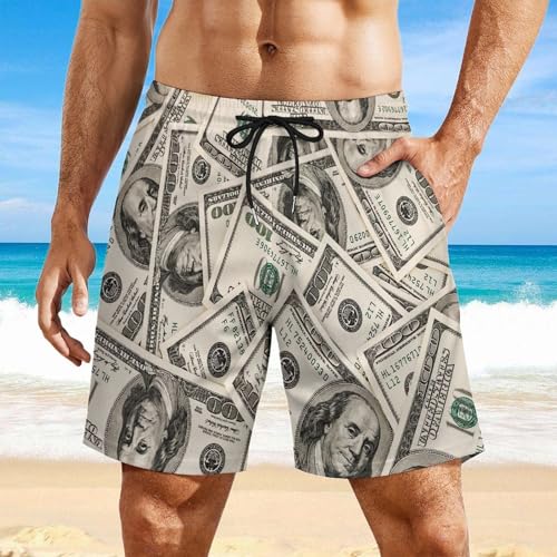 trending ! Money American Hundred Dollar Bills Men's Swim Trunk fast-Dry Shorts with Mesh Lining And Pockets