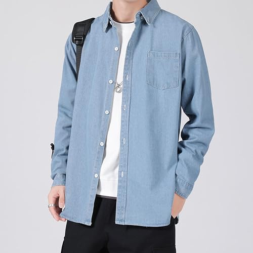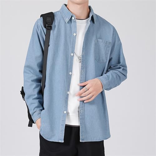 Casual Long Sleeve Button Denim Jacket for Men Fashion Comfort Jean Shirt iconic Lapel Motorcycle Trucker Jackets (Blue 2,Small)
