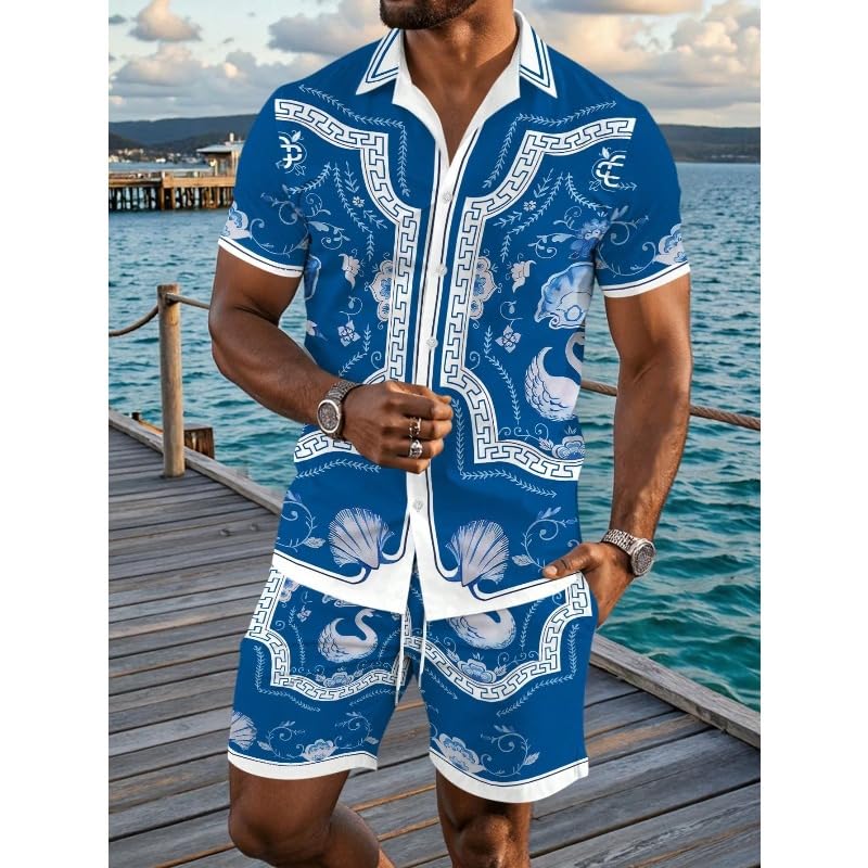 • premium cotton fabric - The men's shirt and shorts two-piece set is made of high-quality fabric, which is lightweight, breathable, smooth to the touch, and moisture wicking. This beach set heralds the beginning of the holiday! Be sure to add this two-piece set to your wardrobe to create a summer look