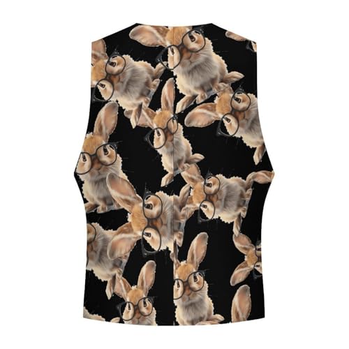 Funny Rabbit Men's Suit Vests Business Formal Dress V-Neck Waistcoat Tops with 2 Pockets