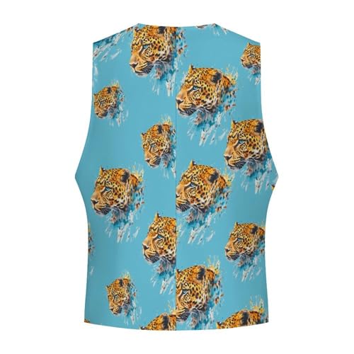 Watercolor Leopard Mens Suit Vests V-Neck Casual Vest Dress Formal Tuxedo Wedding Waistcoat