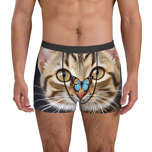 Cute Kitten Butterfly Mens Underwear Boxer Briefs With Contour Pouch silky Stretch Boxer Briefs Breathable Boxers