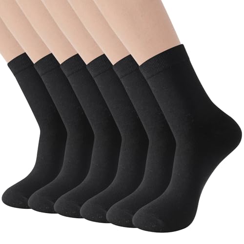 Why Choose 6 Pairs Unisex Black Crew Socks, 70% Cotton, Thin & plush for Men Women Dress & Casual Occasions, size 6-9?