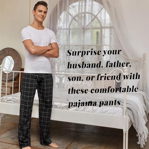 Fabric type: 65% Polyester, 35% CottonCare instructions: Machine WashOrigin: ImportedGood Quality Material: The most comfortable plaid pajama pants for men. These cotton pajama pants are made of high-quality fabrics. The fabric is comfortable, breathable, and lightweight, which is a loose fit and provides maximum comfort.Adjustable Fit: Our lounge pants come in S-2XL to fit most sizes and are fitted with an elastic band to give you a custom fit. The loose-fitting design of these men's sleeping pants makes for unrestricted movement all night or day. The combination of classic lattice pattern design and modern comfort.Versatility Pockets: Two large deep front pockets keep your hands warm and cozy. The pockets are also convenient for you to carry your cell phone, snacks, or other necessities.Washable: We recommend that you wash it before using it for the first time to make your sleep pants softer and more comfortable. Also, please wash at a low temperature and wash with similar colors. Vulcanodon men's pajama pants will be your right choice, whether it is a gift or a purchase for yourself.Great Gift: Perfect birthday, Christmas, and anniversary gifts for your husband, dad, son, or friend. When you put on these lightweight men's pajama pants, you will enjoy your sleeping time all night. Perfect for everyday use. superior materials and excellent craftsmanship ensure long-lasting durability.