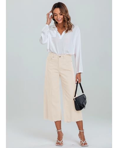 trending ! GRAPENT Jean Capris for Women Wide Leg Jeans High Waisted Seamed Front Raw Hem Denim Capri Pants Stretchy