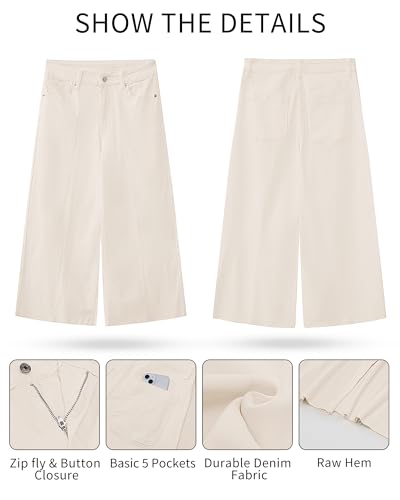 More information about GRAPENT Jean Capris for Women Wide Leg Jeans High Waisted Seamed Front Raw Hem Denim Capri Pants Stretchy