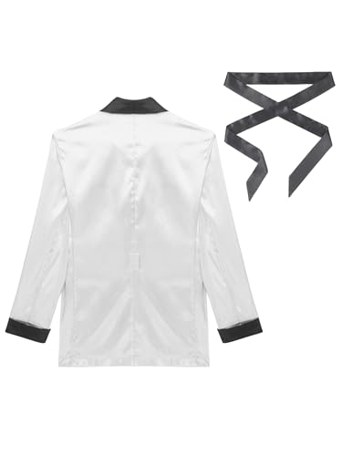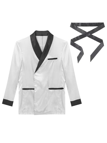 More information about Men's Smoking Jacket Satin Gown Robe Long Sleeve Short Kimono Smoking Robe Coat with Belt